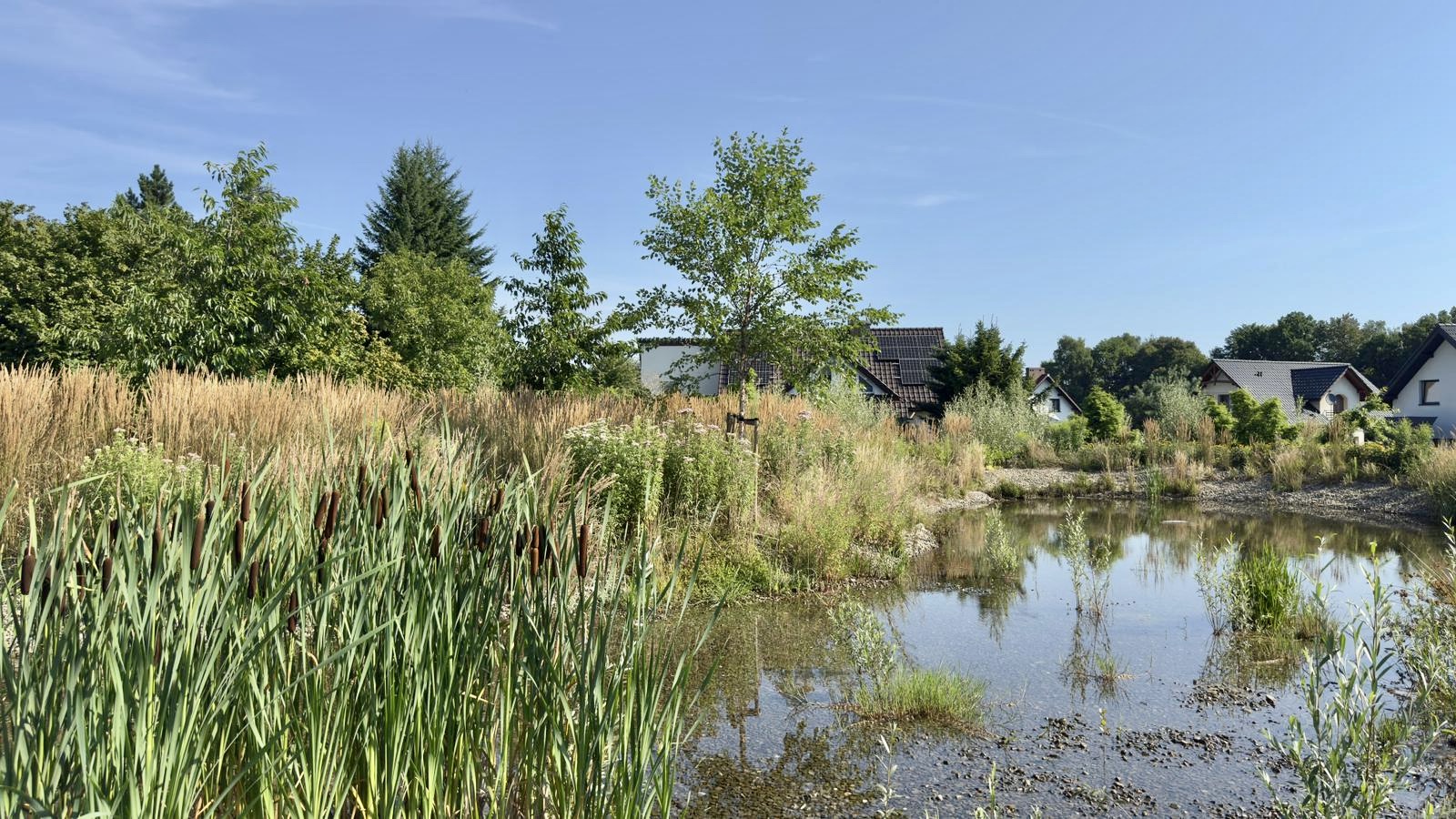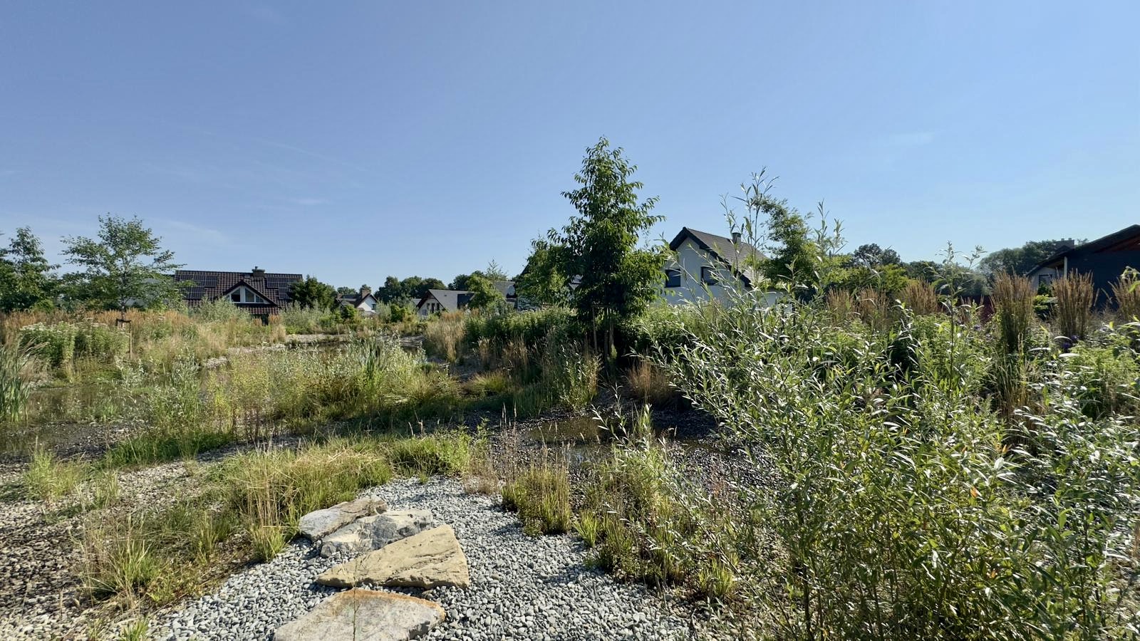 Dobór roślinności uwzględnia zmienne warunki siedliskowe – okresowe zalewanie oraz czasowe przesuszenia. Zastosowano gatunki przystosowane do terenów podmokłych, a jednocześnie odporne na okresową suszę. Taka kompozycja zwiększa stabilność ekosystemu, wspiera bioróżnorodność oraz tworzy siedliska dla owadów zapylających i drobnych organizmów.